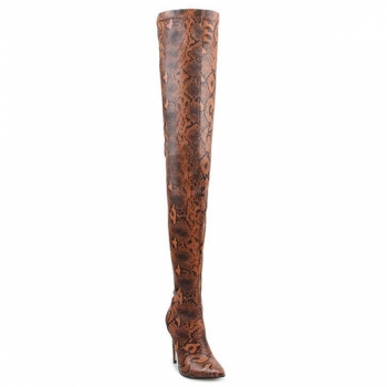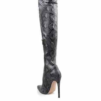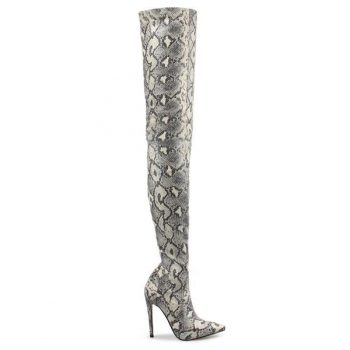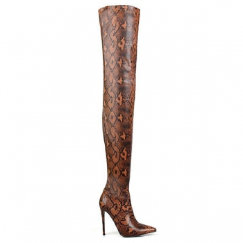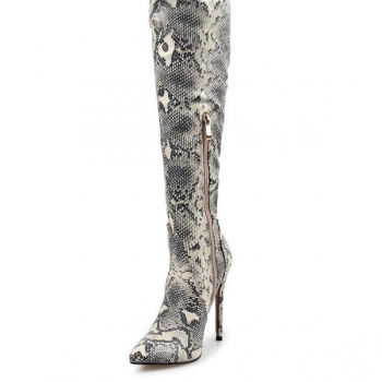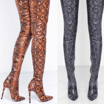 Sexy Snake Printed Pointed-toe High-heeled Over-the-knee Boots