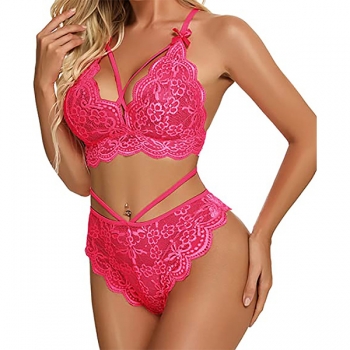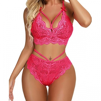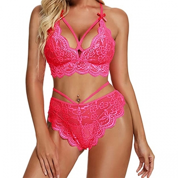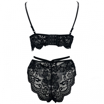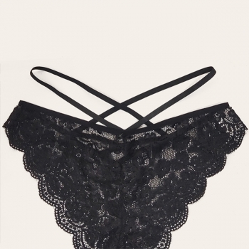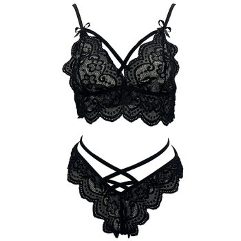 Sexy Solid Color Backless Crossover Lace Lingerie Set