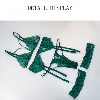 Sexy Solid Color Hollow Out Lace Underwear Lingerie Set
