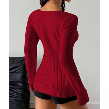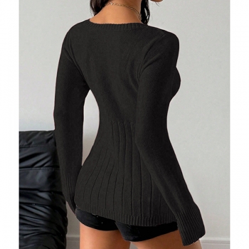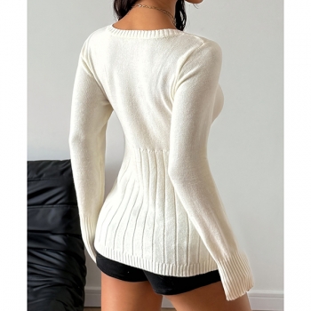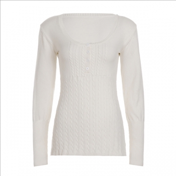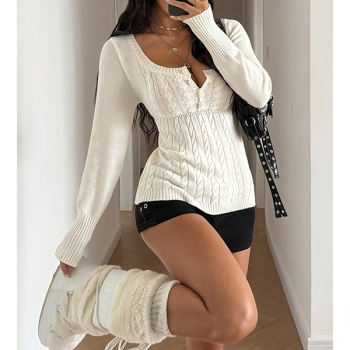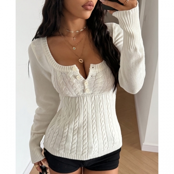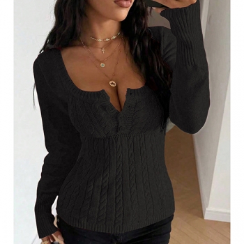 Sexy Square Neck Cable Knit Sweater - Slim Fit Button Front Long Sleeve Pullover Top
