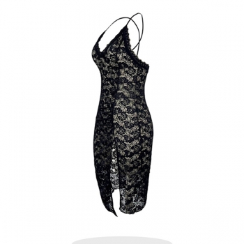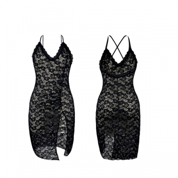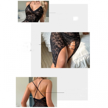 Sexy V-neck Side Slit Pearl Cross-criss Backless Nightwear Dress
