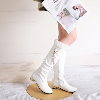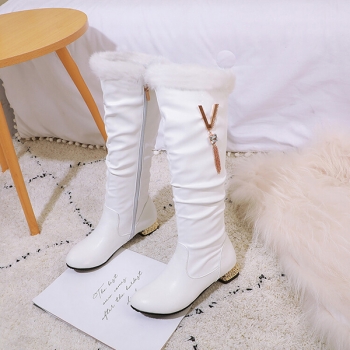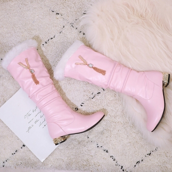 Street Fashion Plush Lined Tassel Artificial Leather PU Boots for Children