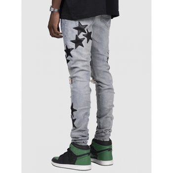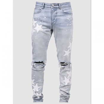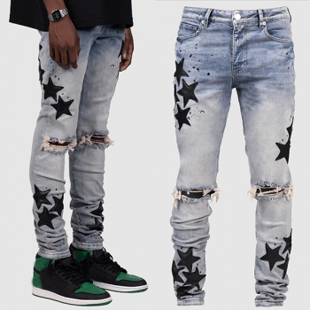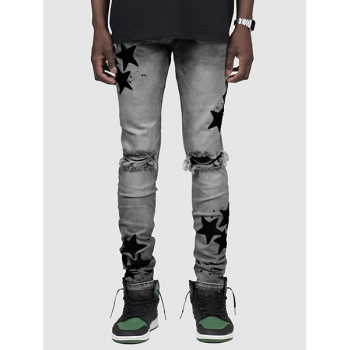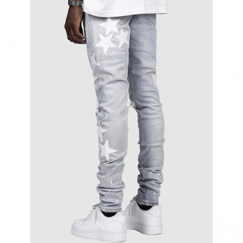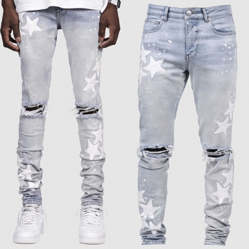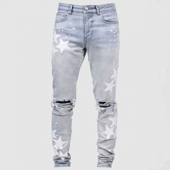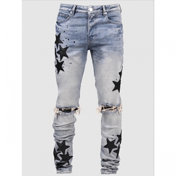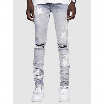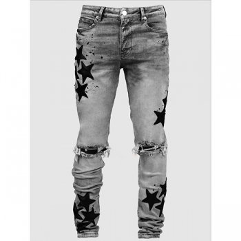 Stretchy Slim Fit Star-Ripped Denim Jeans