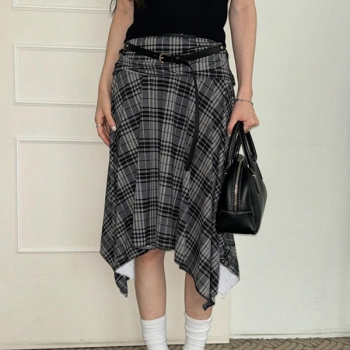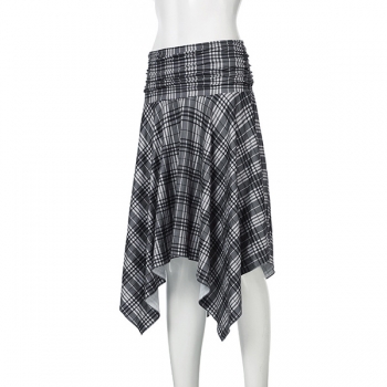 Vintage Draped High-rise Irregular Hemline Plaid Skirt