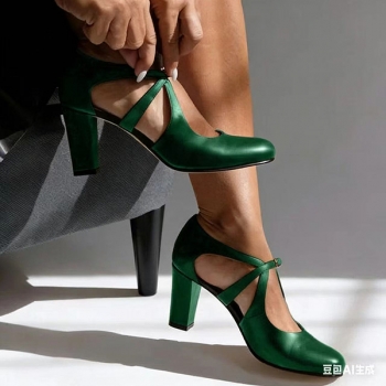 Vintage Hollowout Block Heeled Artificial Leather PU Pump Shoes