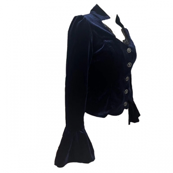 Vintage Lace Spliced V-neck Front Button Trumpt Long Sleeve Irregular Hemline Shirt