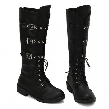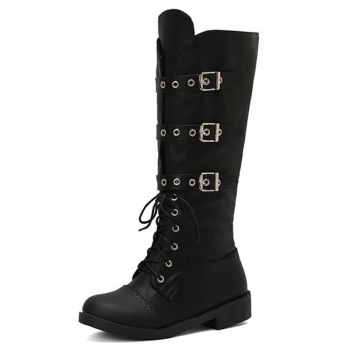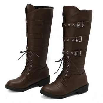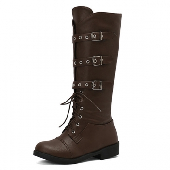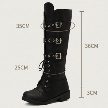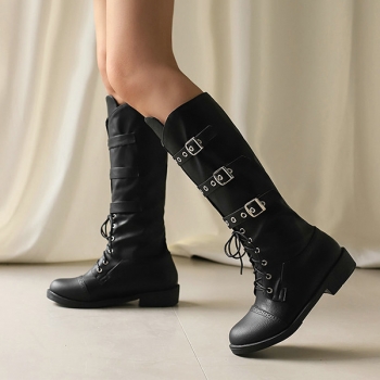 Vintage Round-toe Block Heeled Buckle Lace-up Boots