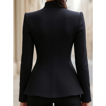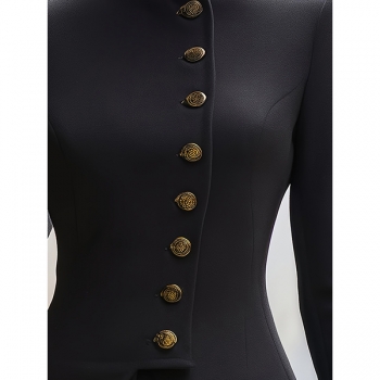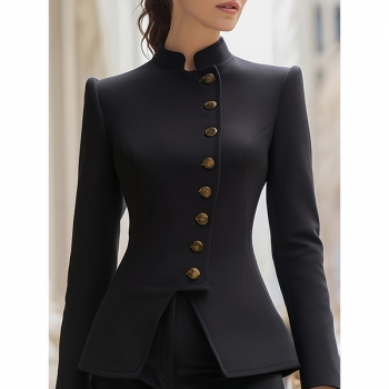 Vintage Stand Collar Long Sleeve Front Button Irregular Jacket