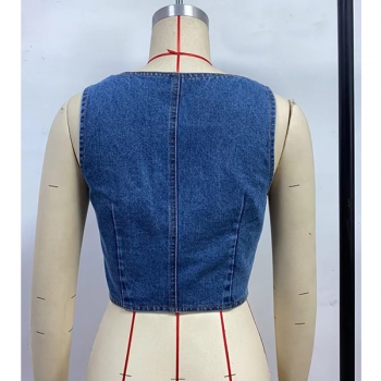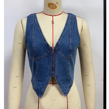 Western Chic Denim Vest Top with Zip-Front