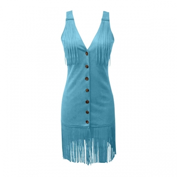 Women's Faux Suede Fringe Vest Dress - Western Button Down Mini Boho Cowgirl Dress with Tassels & V-Neck