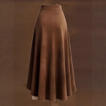 Women's Western Faux Suede Midi Skirt - High Waist Lace Patchwork with Ruffle Hem